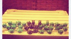 定番の多肉植物グリーンアレンジ、アクリルタワシ、